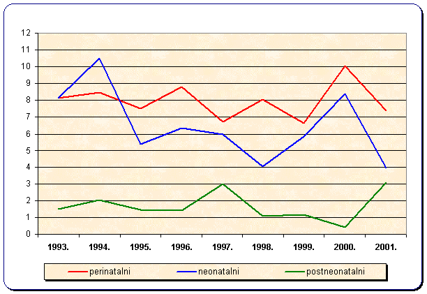Kretanje dojenačkog mortaliteta u Primorsko-goranskoj županiji 1993-2001.