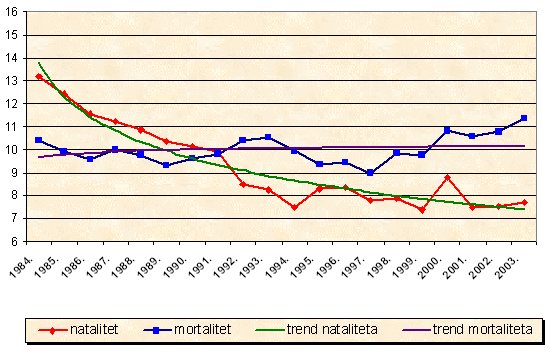Kretanje stopa nataliteta i mortaliteta u Primorsko-goranskoj županiji 1984-2003.