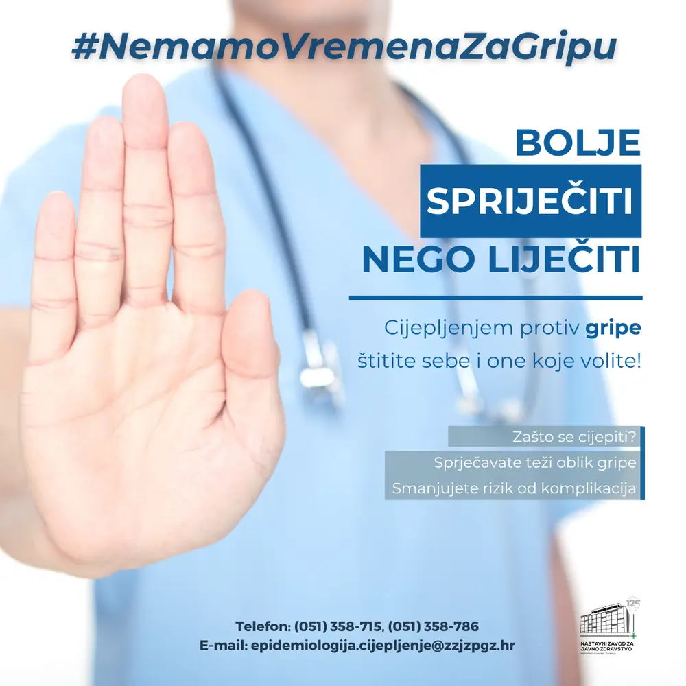 U Primorsko-goranskoj županiji cijepljenje protiv gripe započinje u ponedjeljak, 20. listopada 2025. godine, a za ovu sezonu nabavljeno je 28.000 doza cjepiva INFLUVAC – trovalentnog cjepiva.